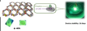 Congrats to Youssef and Luca for their new publication in Dalton Transactions, in collaboration with Dr. Jean-Louis Schmitt from the University of Strasbourg and Dr. Daniel Van Opdenbosch from the Chair for Biogenic Polymers. We implemented new green hybrid LEDs (HLEDs, stability up to 16 days) based on a Magnesium MOF (photoluminescence quantum yield > 80%) embedded in a polystyrene matrix. A new step forward in the world of solid-state lighting based on rare-earth free materials!