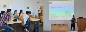 Olivia and Anna presented their research topics at the TUM Green Day to international master students. Olivia explained them our research topics in Photovoltaic and Lighting devices and an overview about her ELAFID MSCA project, while Anna discussed application of fluorescent proteins in technologies and an overview of her HeatBLED MSCA project. Overall it was a refreshing and innovative atmosphere with interested students around the world. Thanks for visiting us!!!